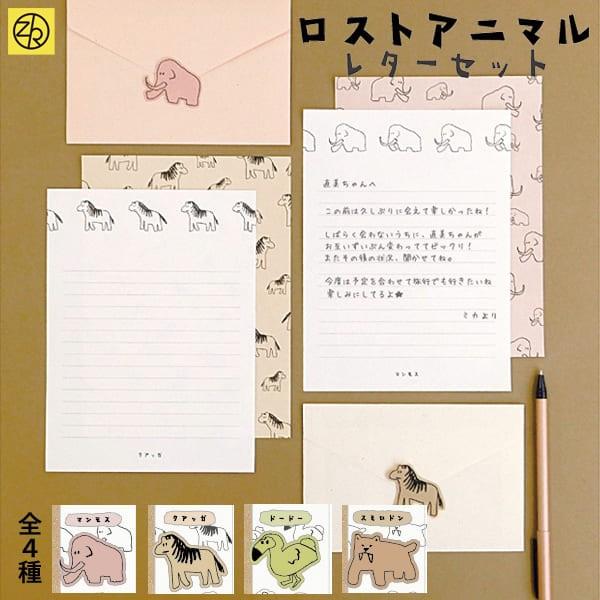 レターセット 手紙 便箋 メモ かわいい おもしろ ロストアニマル ゾウ 象 シマウマ 馬 ダチョウ トラ 絶滅 動物 どうぶつ ゼットアンドケイ M便 6 25